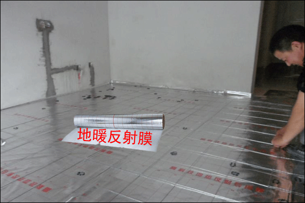 4.安裝地暖反射膜。地暖反射膜的作用主要是阻止熱量向下輻射,和安裝管道時有一個參量,反射膜都有標(biāo)準(zhǔn)的格子。